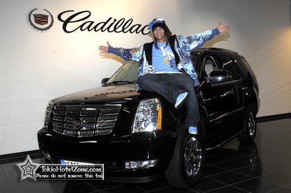 Tom Kaulitz, которому 1 сентября исполнилось 18 лет, купил себе Cadillac Escalade. По сравнению с машиной,молодая рок-звезда выглядит достаточно миниатюрно.... Тем не менее, он исполнил свою мечту по покупке авто,о которой по собственным словам мечтал уже очень давно. Том задавал достаточно много вопросов об использовании машины: он с радостью ждет, прежде всего то, что вскоре откроет свой гараж и увидит там свою машину,хоть и ездит достаточно редко.... Машинка стоит кстати 90 000 евро...